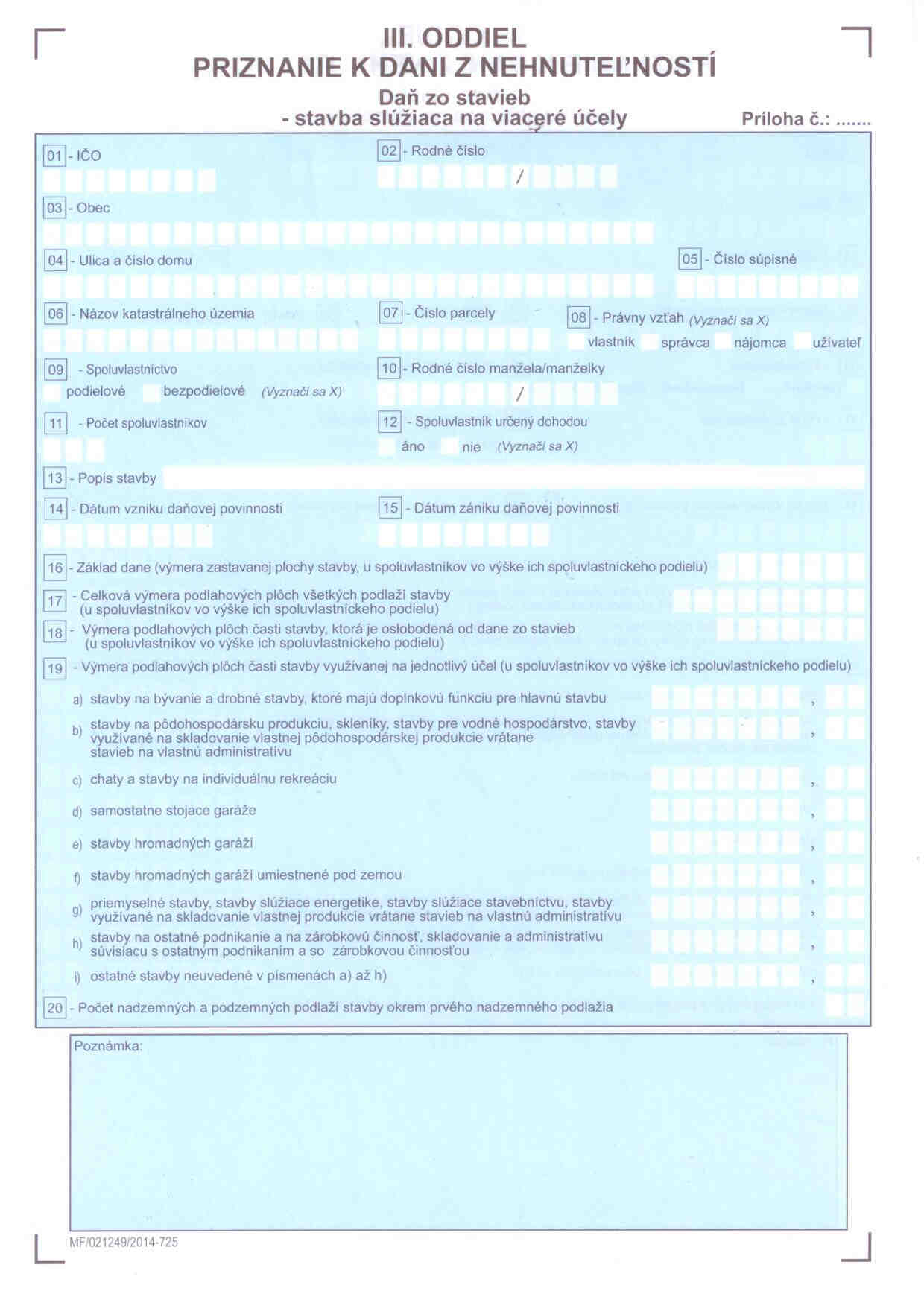 Poučenie na vyplnenie priznania k dani z nehnuteľností