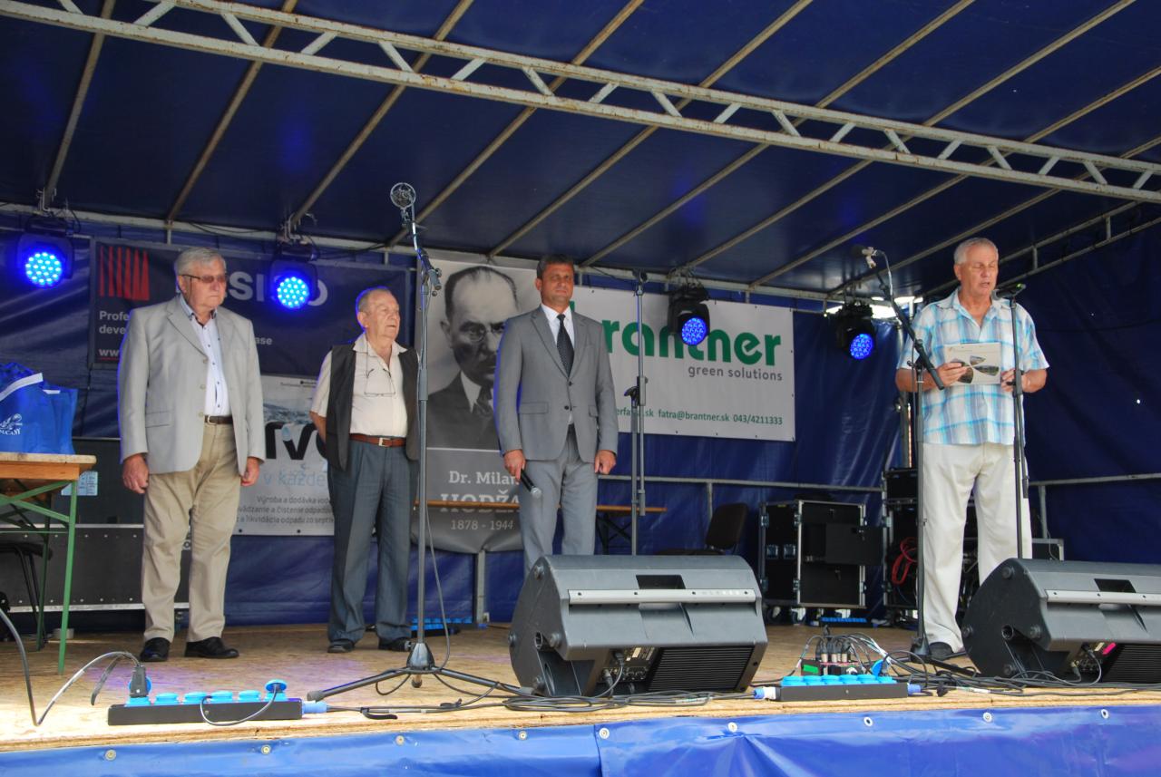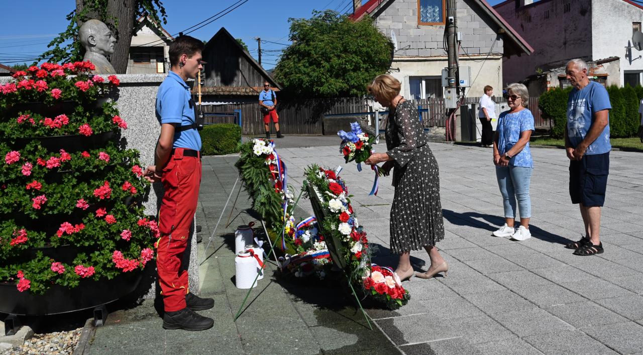 Úcta rodákovi - kladenie vencov pri buste Milana Hodžu na námestí SNP v Sučanoch .