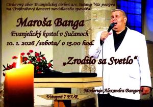 Cirkevný zbor Evanjelickej cirkvi a. v. v Sučanoch srdečne pozýva všetkých občanov a priaznivcov dobrej hudby na koncert známeho slovenského nevidiaceho umelca a tenoristu Maroša Banga.