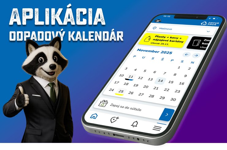 Spoločnosť Natur Pack, ktorá obci financuje triedený zber spustila mobilnú aplikáciu ODPADOVÝ KALENDÁR. Je bezplatne dostupná na stiahnutie na platformách GOOGLE PLAY a APPLE STORE.