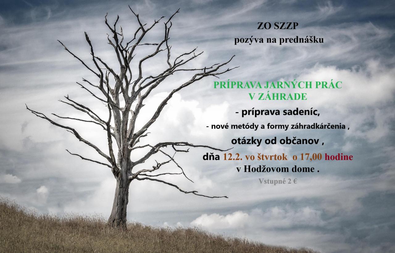 Základná organizácia Slovenského zväzu zdravotne postihnutých (ZO SZZP) v Sučanoch srdečne pozýva všetkých občanov, záhradkárov a milovníkov prírody na odbornú prednášku zameranú na nadchádzajúcu sezónu.
