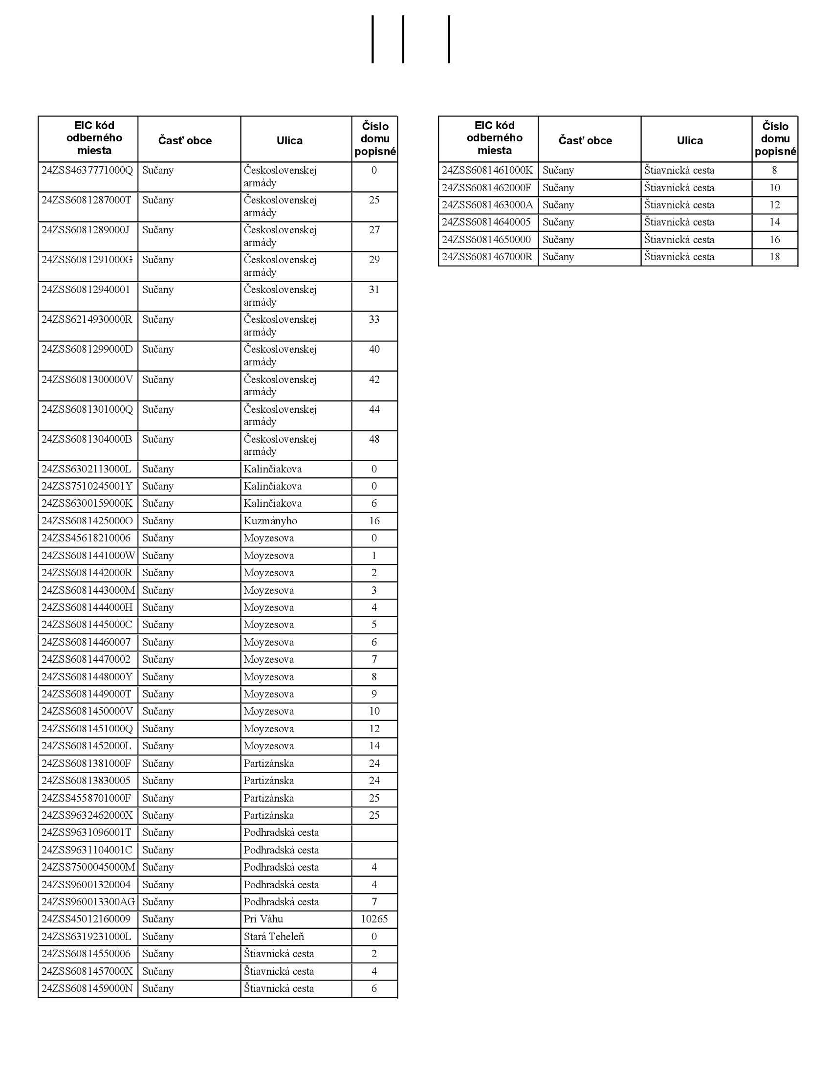 Bližšie informácie ohľadom odberných miest - ako je kód elektromeru a čísla domov, ktorých sa to týka, si môžete pozrieť v prílohe.