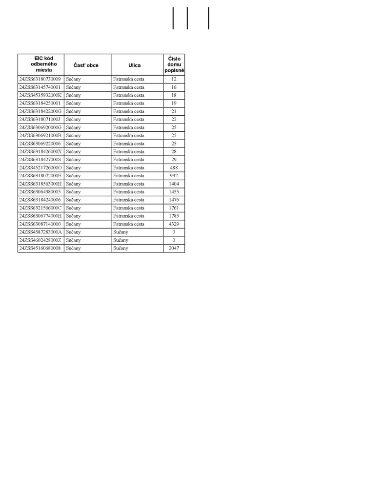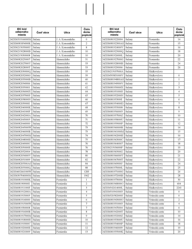 Podrobné informácie o dotknutých odberných miestach (vrátane kódov elektromerov a čísiel domov) nájdete nižšie.