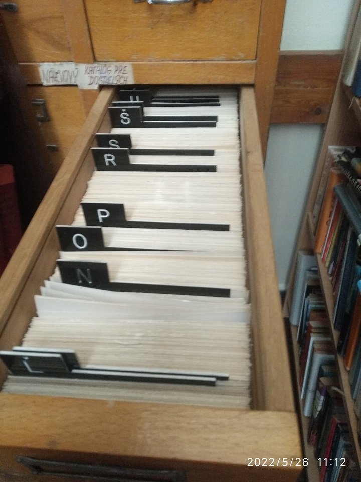 Okrem rozvoja a pozdvihnutia úrovne knižničných služieb v obci sa pani Oľga Lazišťanová zaslúžila o vytvorenie prvého menného a názvoslovného katalógu celého knižničného fondu našej knižnice, v ktorom počas svojho pôsobenia v knižnici naďalej pokračovala. Tento katalóg v našej knižnici doteraz uchovávame. V roku 1961 urobila prvý zápis knižničnej jednotky pod číslom 1, autor Ján Neruda, dielo Žerty hravé, vydané v roku 1923 do prírastkovej knihy. A dňa 12.8.1983 svoj posledný zápis knižničnej jednotky ako knihovníčka do prírastkovej knihy pod číslom 23 618, autor E.Kottek, dielo československé rozhlasové a televízne přijímače.