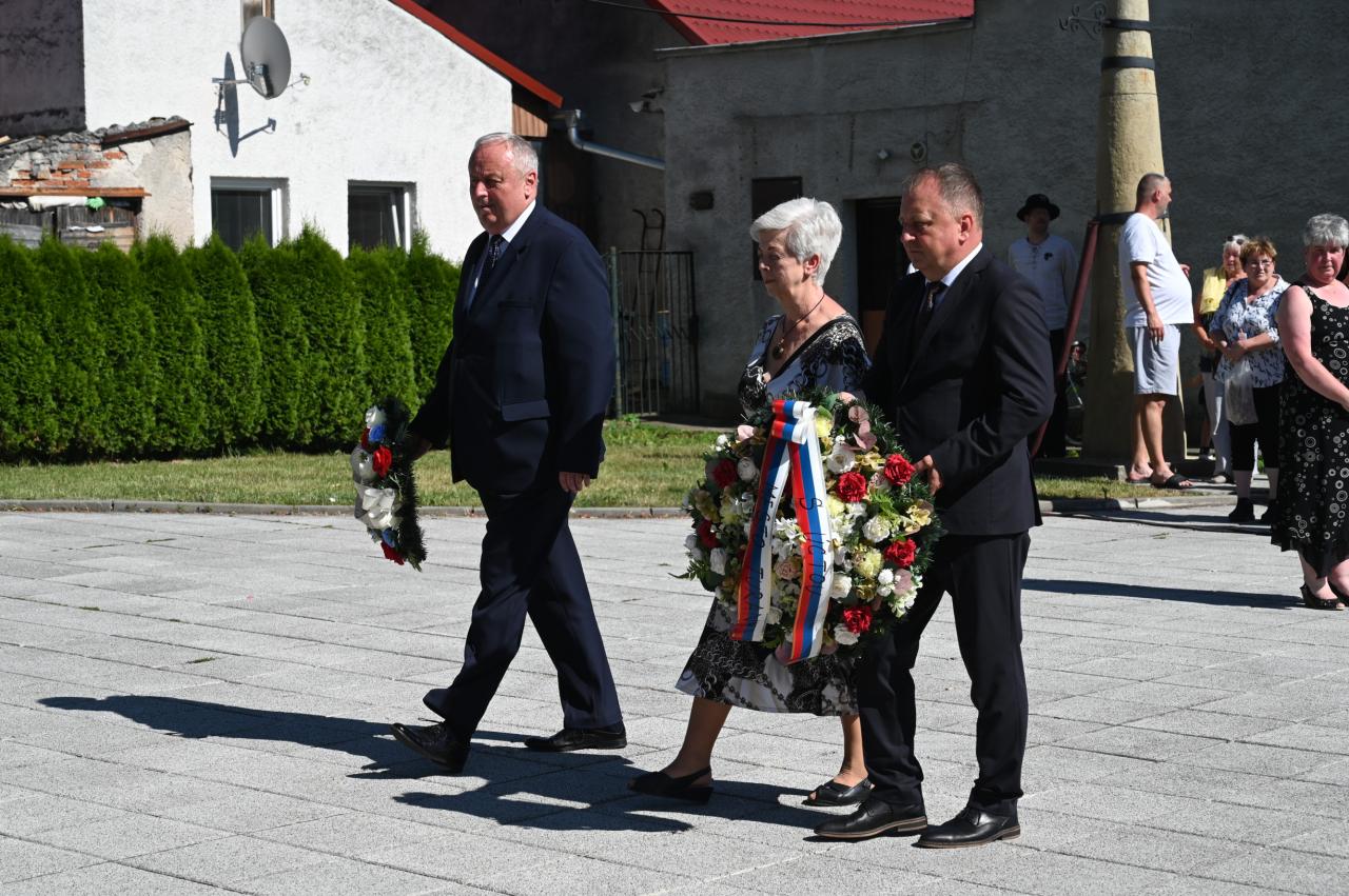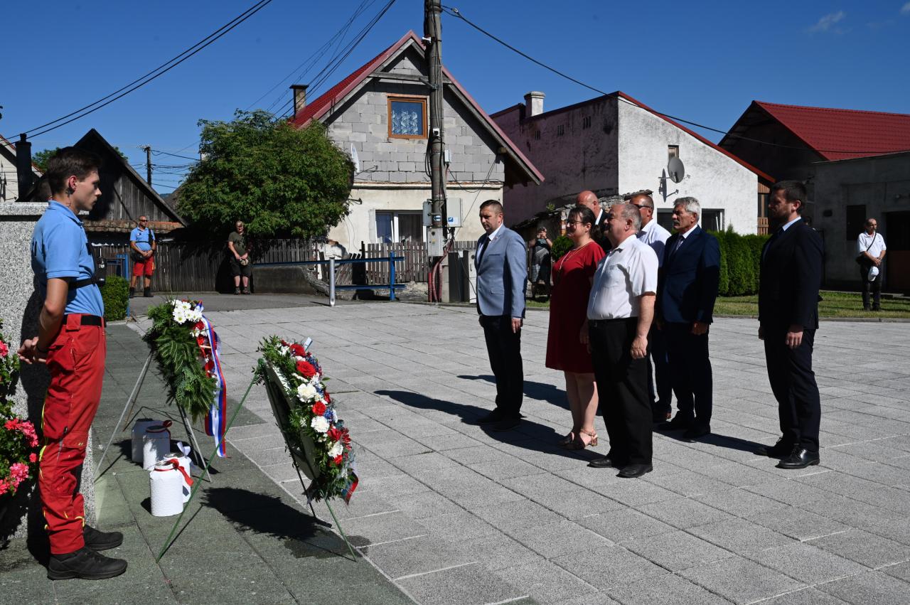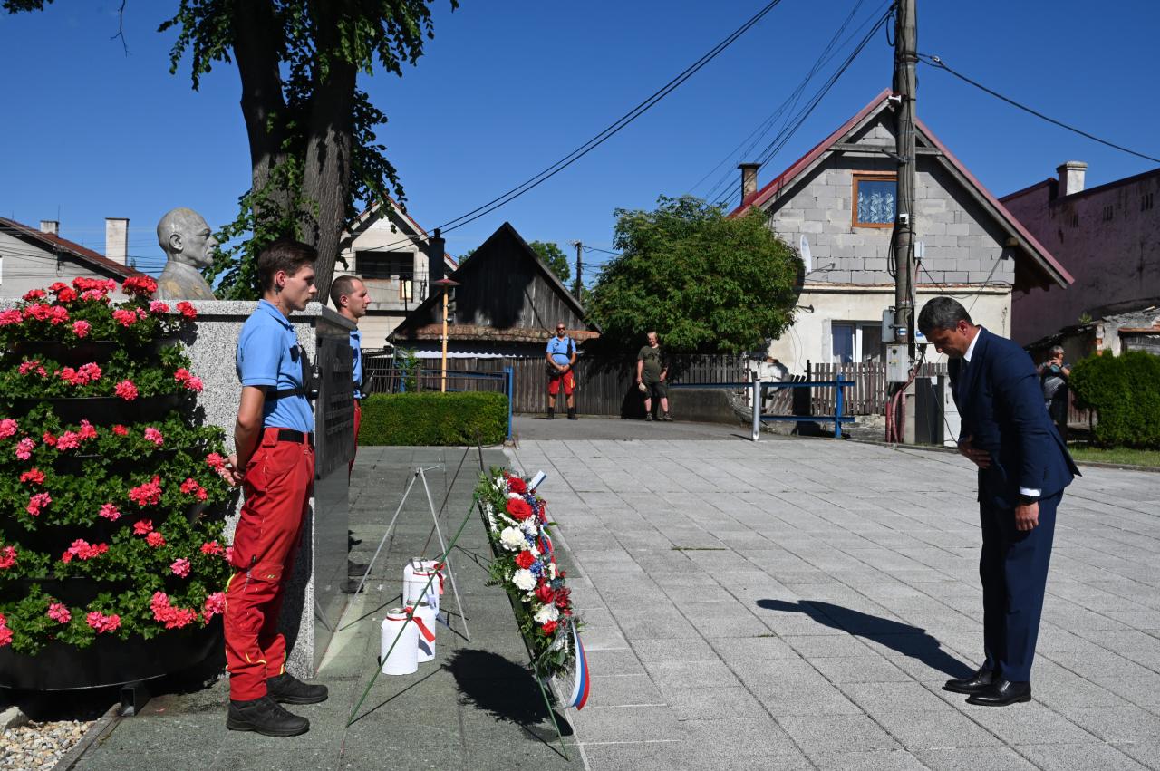 Úcta rodákovi - kladenie vencov pri buste Milana Hodžu na námestí SNP v Sučanoch .