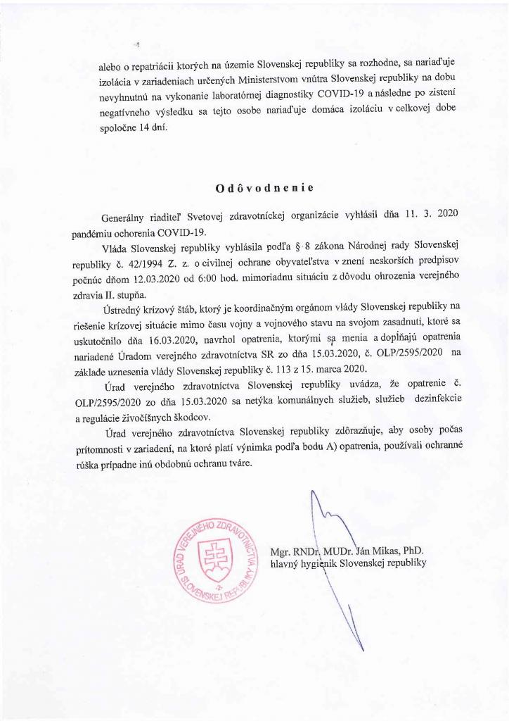 Opatrenie Úradu verejného zdravotníctva Slovenskej republiky pri ohrození verejného zdravia