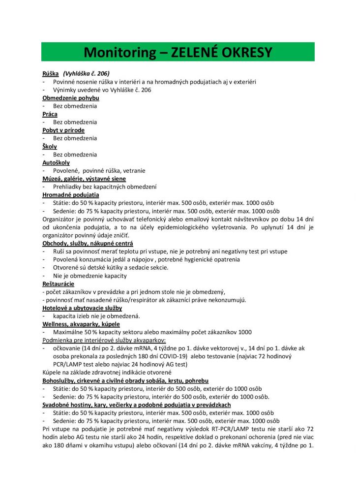 Monitoring - ZELENÉ OKRESY /v prílohe/